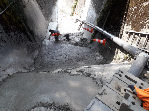 Travaux de reprise du seuil du Nant Trouble, Isidore Berthet à Puissez – Ugine